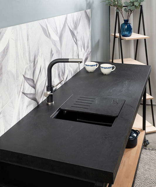 2410 Тэйде — чёрный декор с поверхностью Лава (матовая рельефная текстура, напоминающая застывшую лаву).