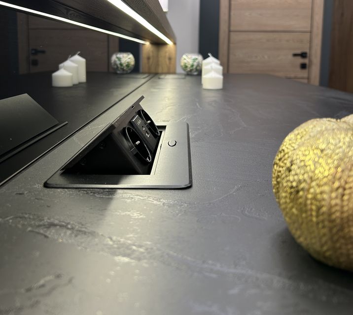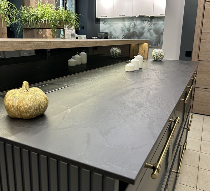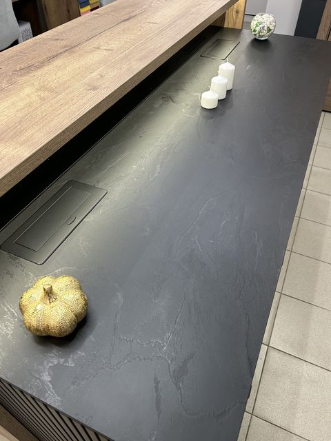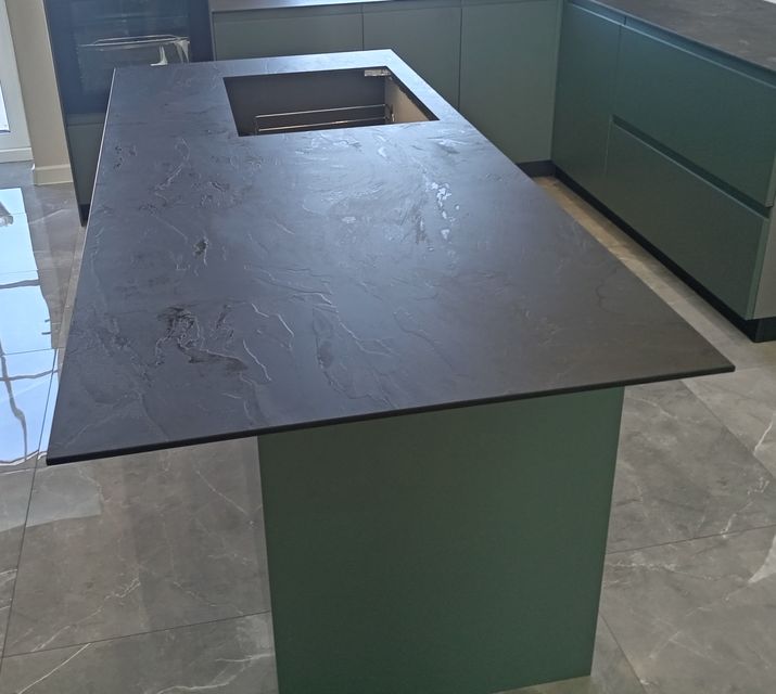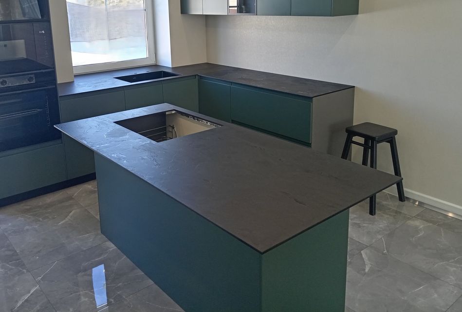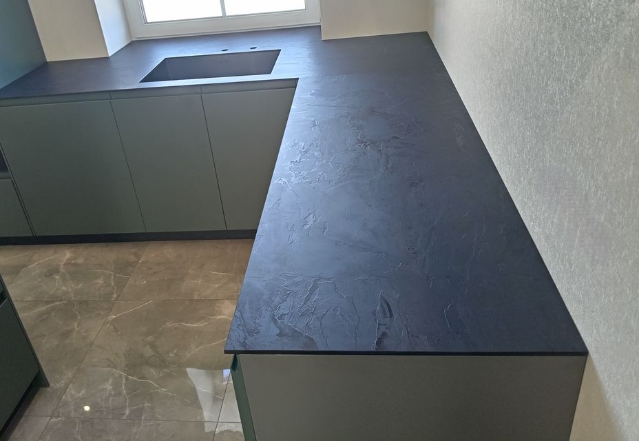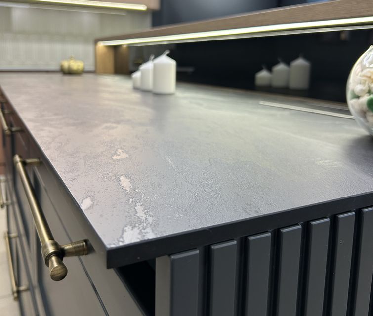 - Профиль столешниц и стеновых панелей — шлифованный по периметру с фаской 1 × 1 мм снизу, 2 × 2 мм сверху.