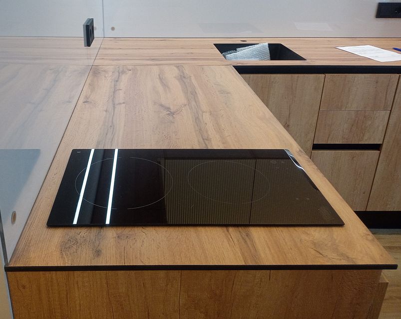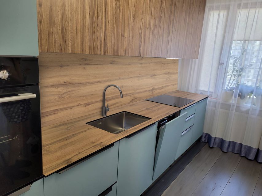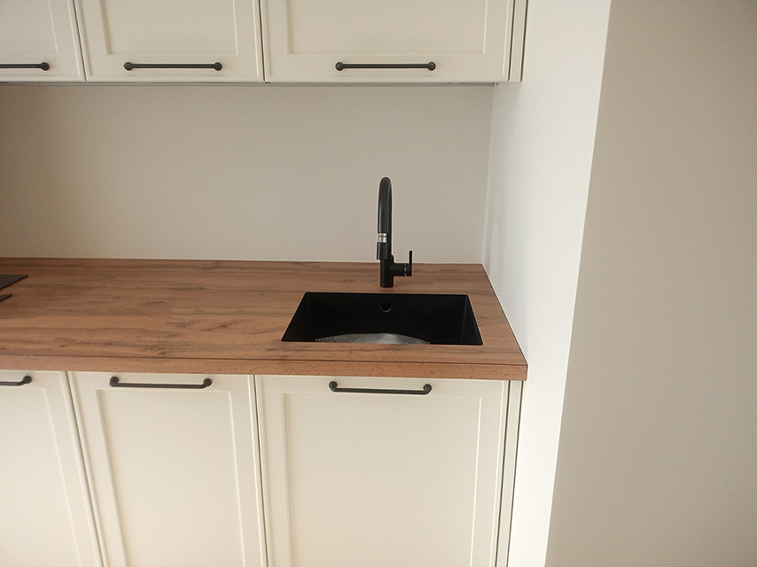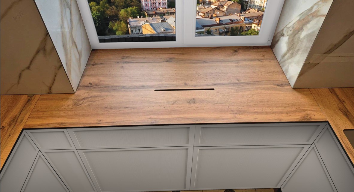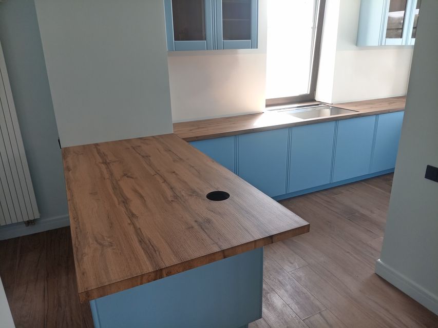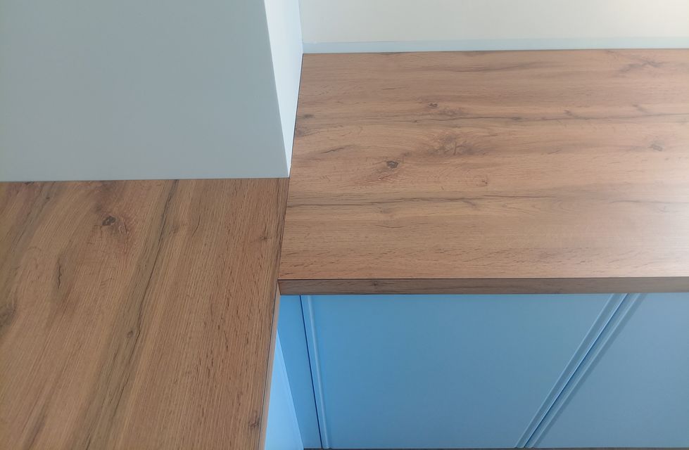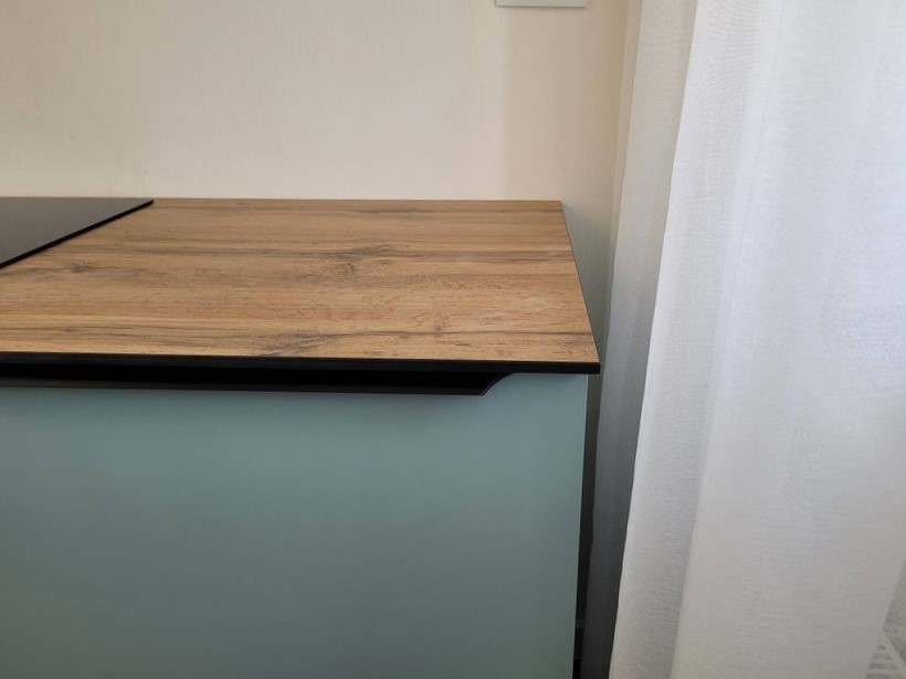 - Профиль столешниц и стеновых панелей — шлифованный по периметру с фаской 1 × 1 мм снизу, 2 × 2 мм сверху.