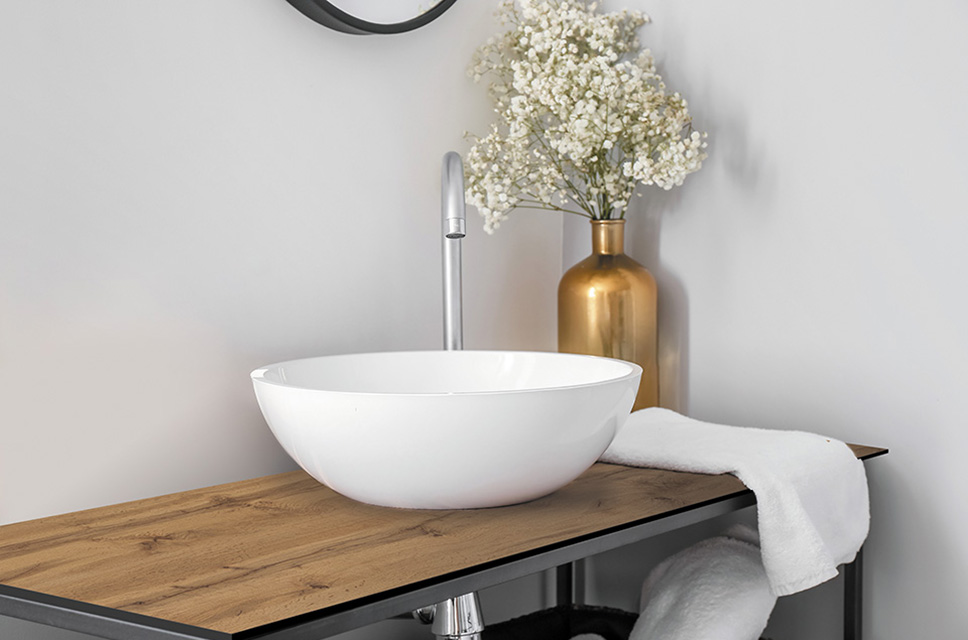 • Под столешницу на глубину материала 10 мм;