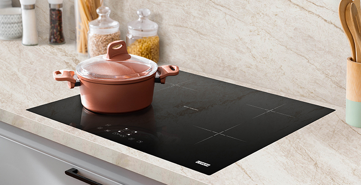 Стеклокерамическая поверхность устойчива к высоким температурам и перепадам, поэтому вы можете свободно переставлять или сдвигать горячую посуду с конфорки в любое удобное место — подставки больше не нужны.