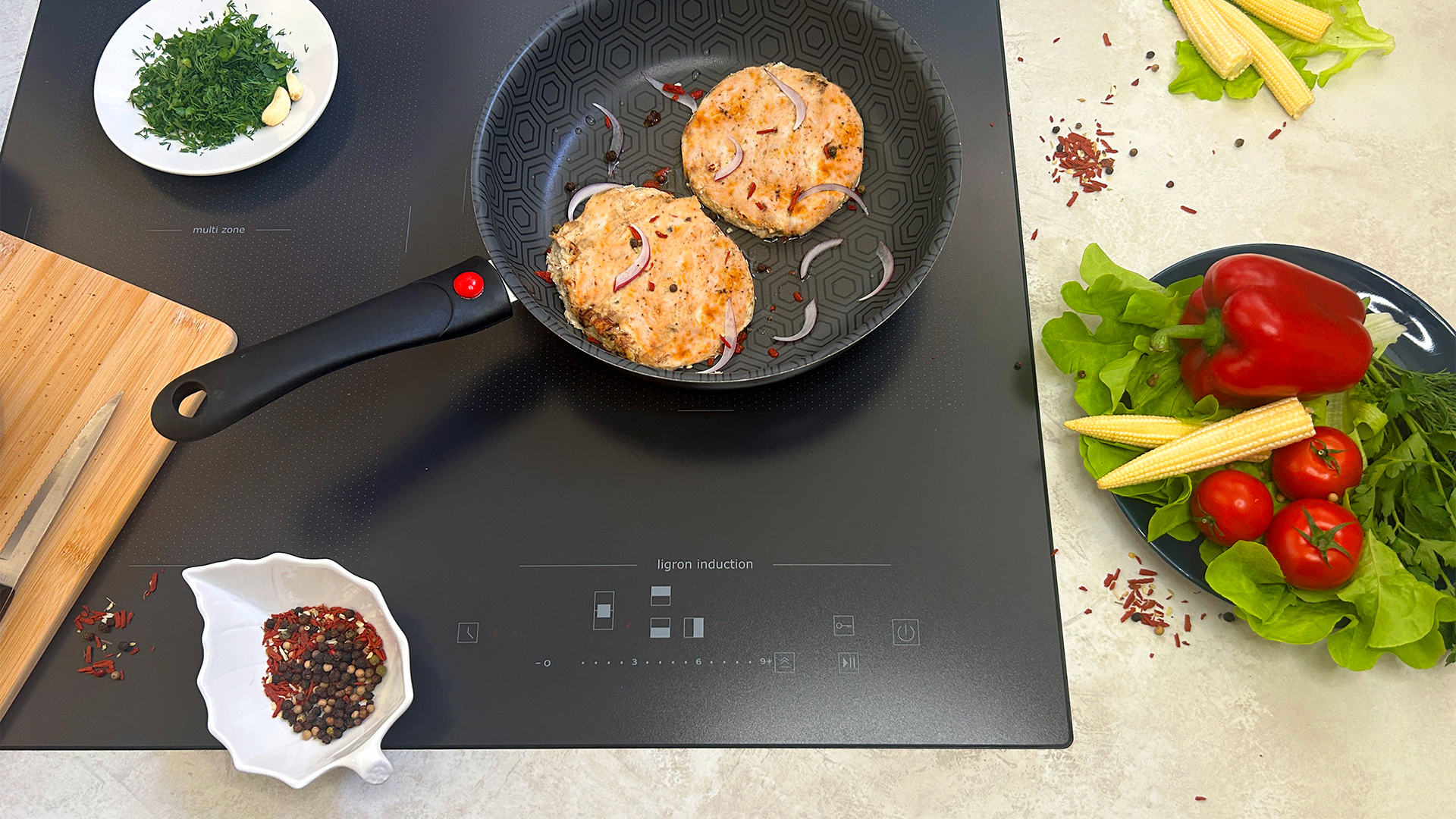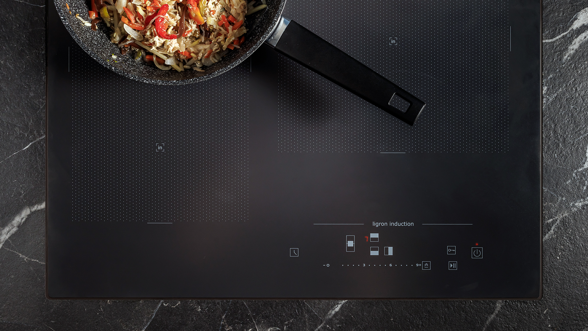 Встраиваемая индукционная варочная панель с мультизоной, которая объединяет две конфорки в одну площадь нагрева. Эта функция открывает новые возможности на кухне, создавая пространство для любых кулинарных идей.