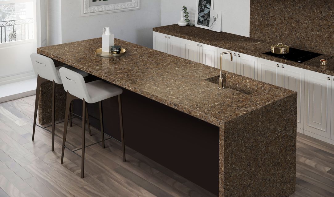 - Декор неравномерный, имитирует натуральный камень, имеет разводы и вкрапления разных размеров. Имеет мерцающие вкрапления медного цвета.